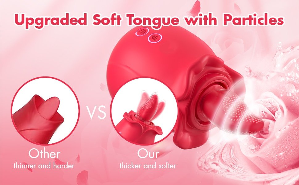 Upgraded Soft Tongue – Thicker TPE cover with stimulating particles (gentler than hard tongues).