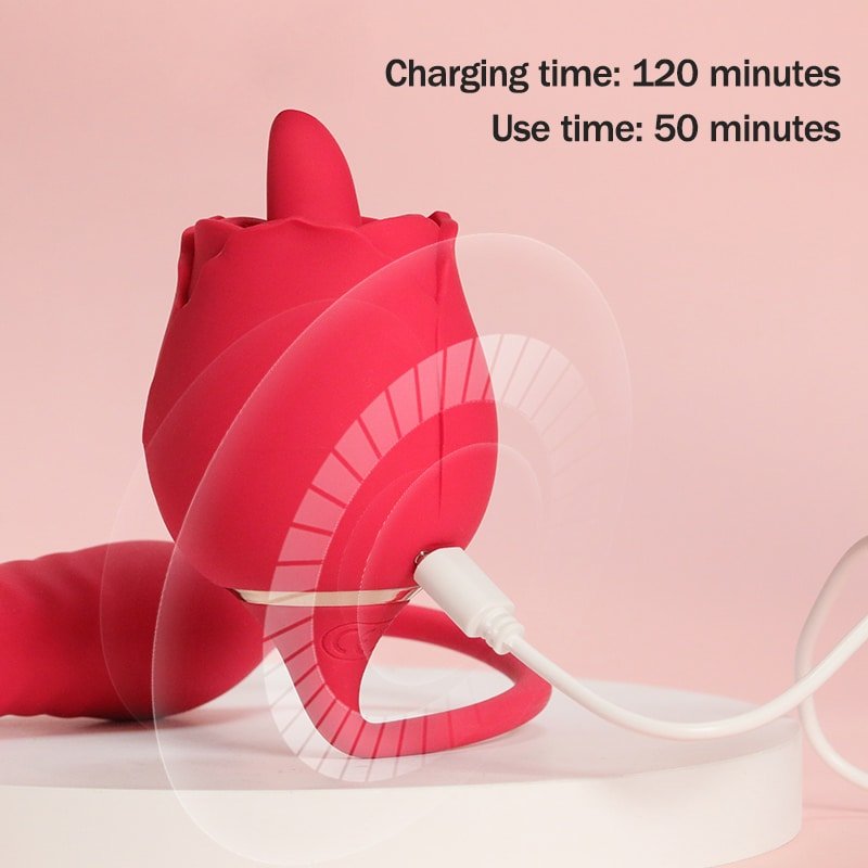 Lurevibe – Rose Female Tongue Licking Egg Jumping Telescopic Masturbation Device Double-headed Vibrating Sex Toy