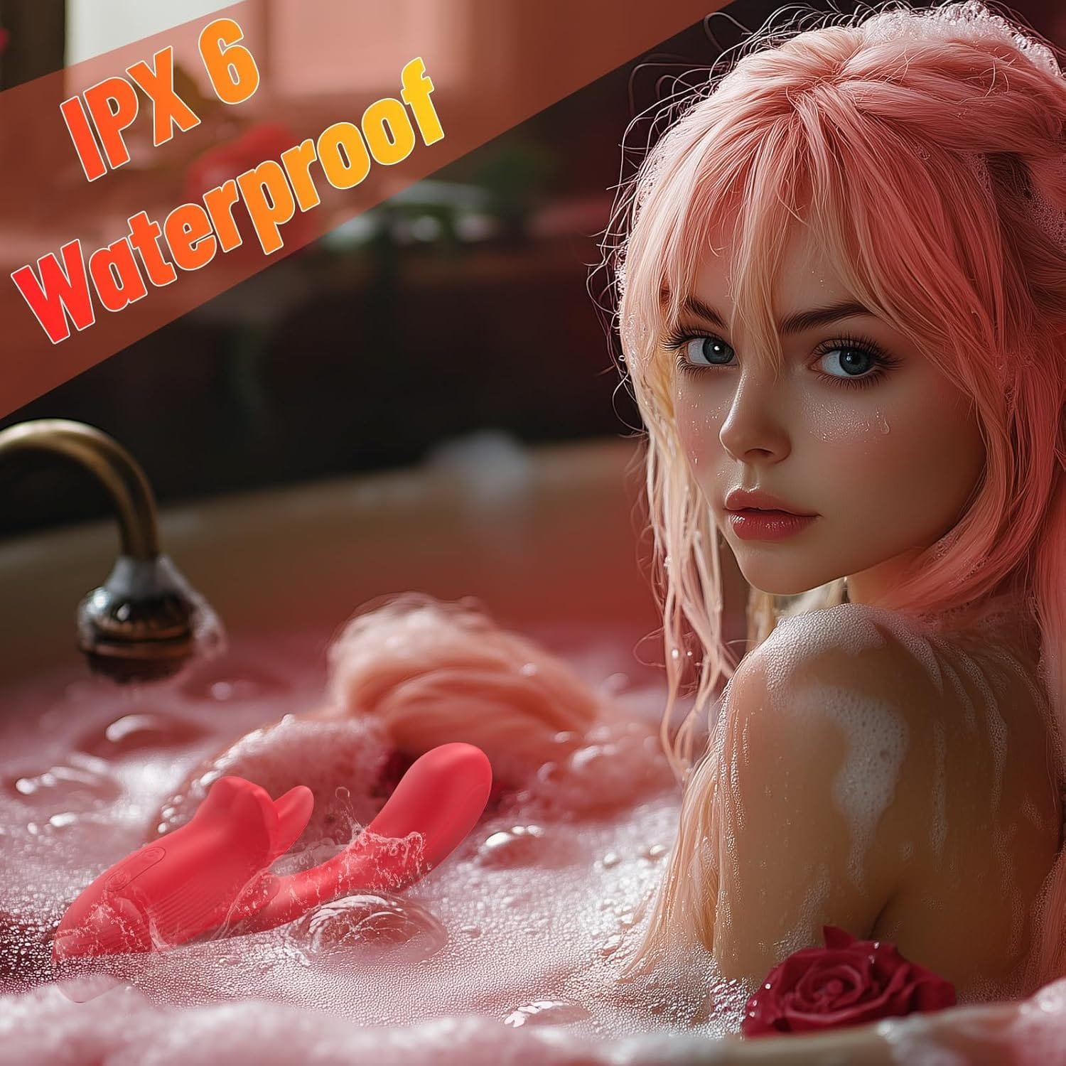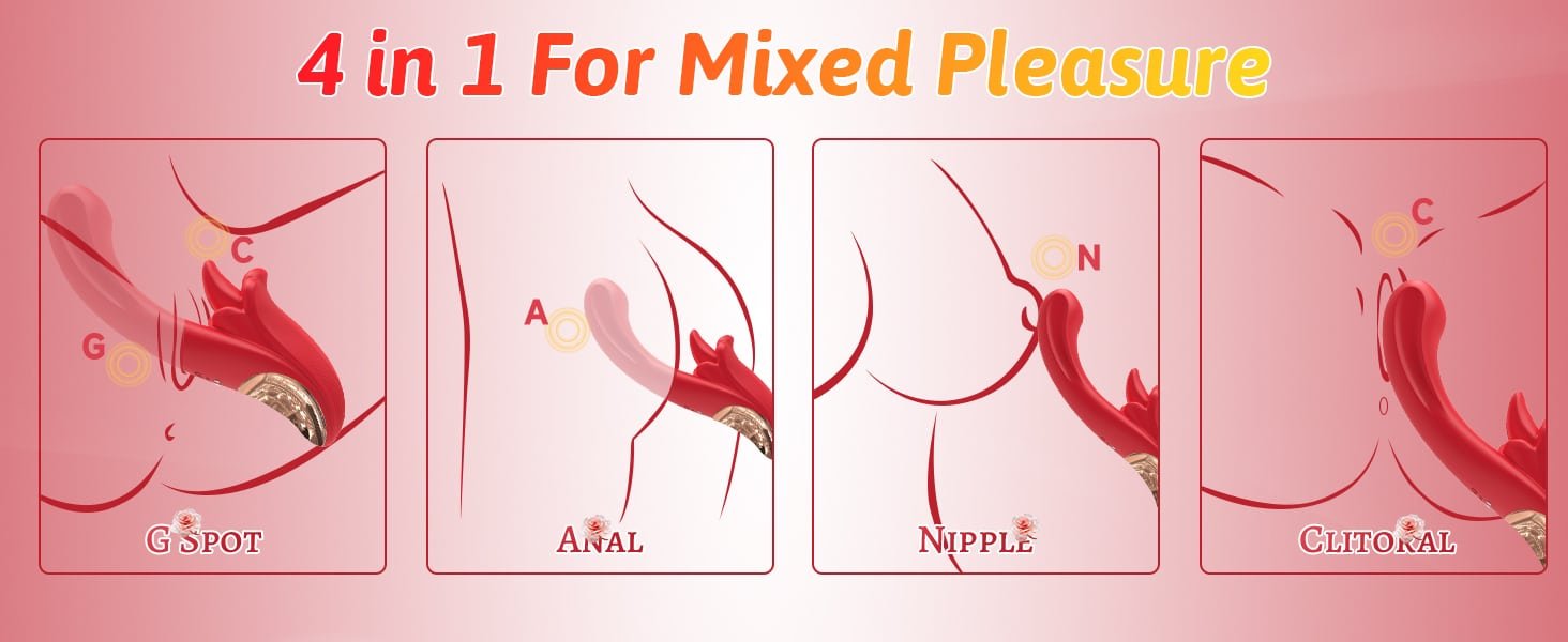 Lurevibe – Rose Female Tongue Licking Egg Jumping Telescopic Masturbation Device Double-headed Vibrating Sex Toy