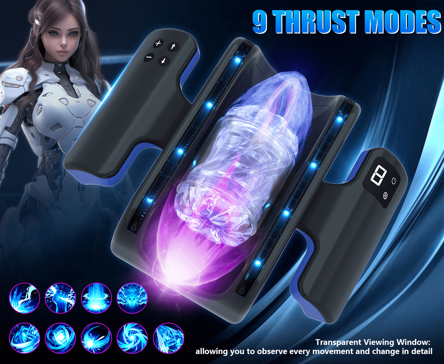 - Modes: 9 vibration speeds + telescopic thrusting