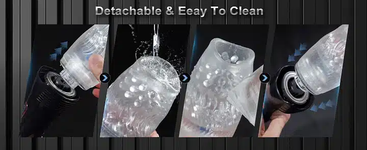 - Removable Sleeve & Ergonomic Design – This upgraded men’s sex toy is different from others in that. its silicone sleeve is easily removable which is soft and flexible. can be removed and washed in water after use. The ergonomically designed sleeve will fit almost all sizes. Easy to use and relaxed without any discomfort.