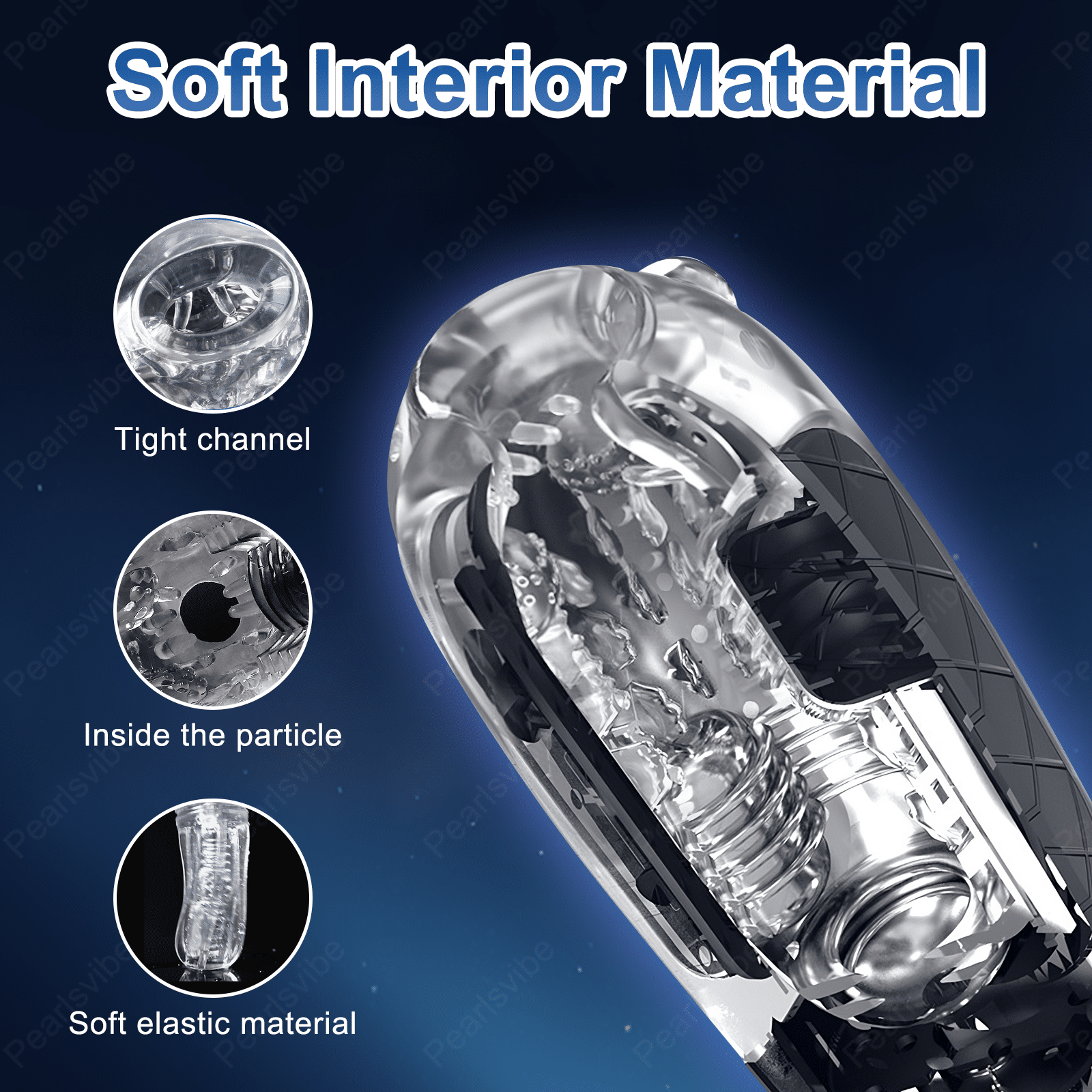 You can see yourself slowly inserting through the crystal silicone. while feeling the raised ridges. balls. and strips passing by. massaging your glans or pen*s.