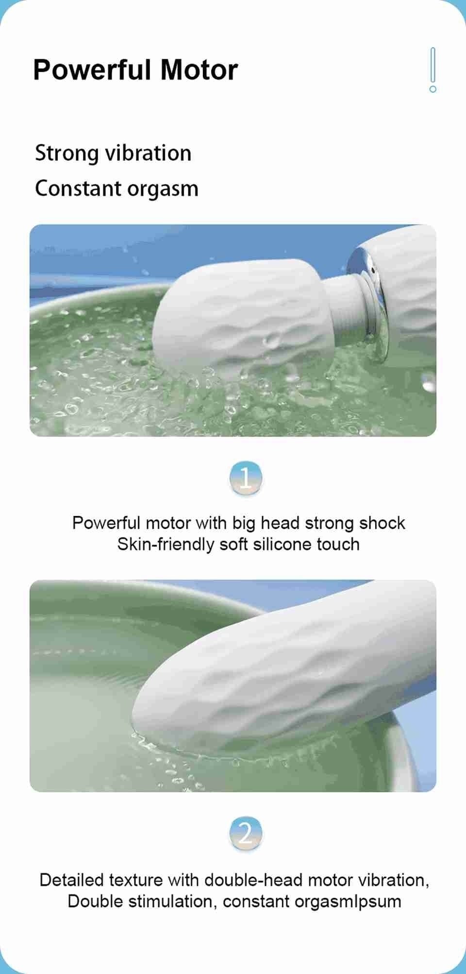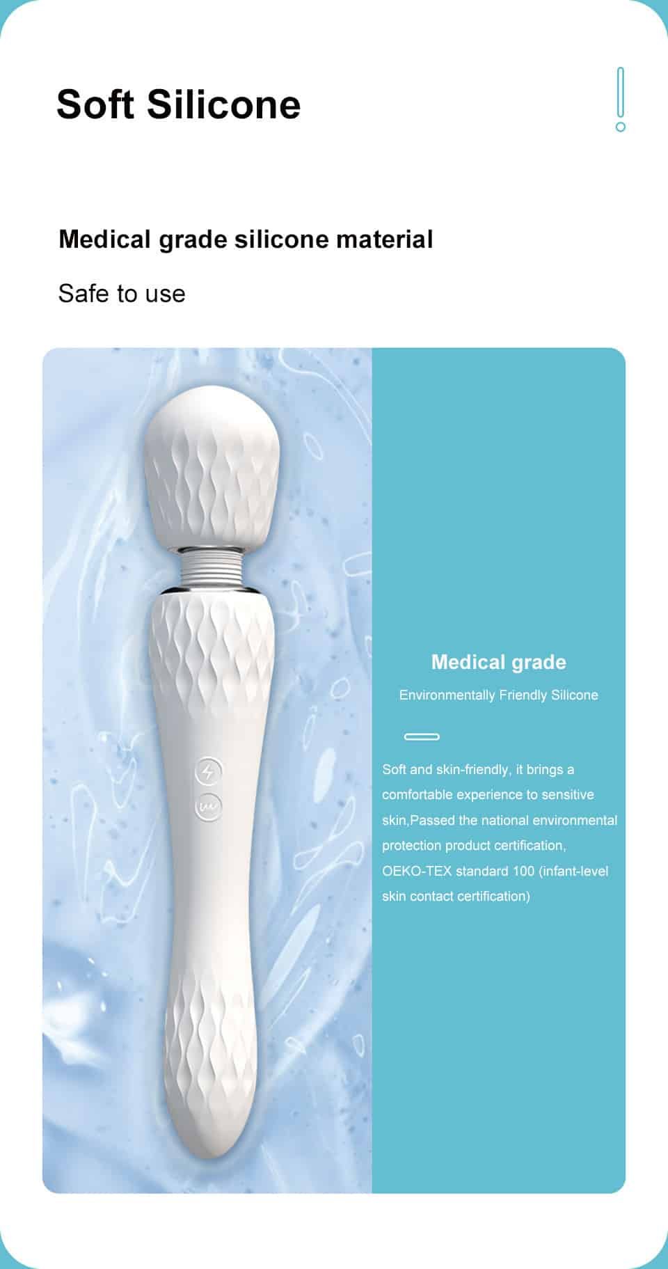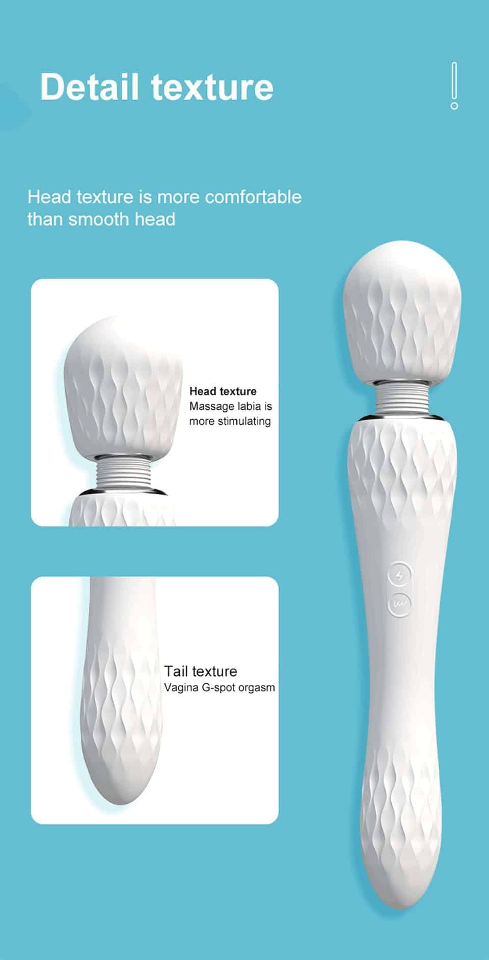 This is a powerful vibrator with strong vibration on the big head. which can massage the whole body and stimulate the clitoris or nipples. The tail also has multi-frequency vibration function. which provides women with vaginal masturbation function. The corrugated texture increases the sense of stimulation. and it Use medical grade silicone. soft and skin-friendly. recommended!