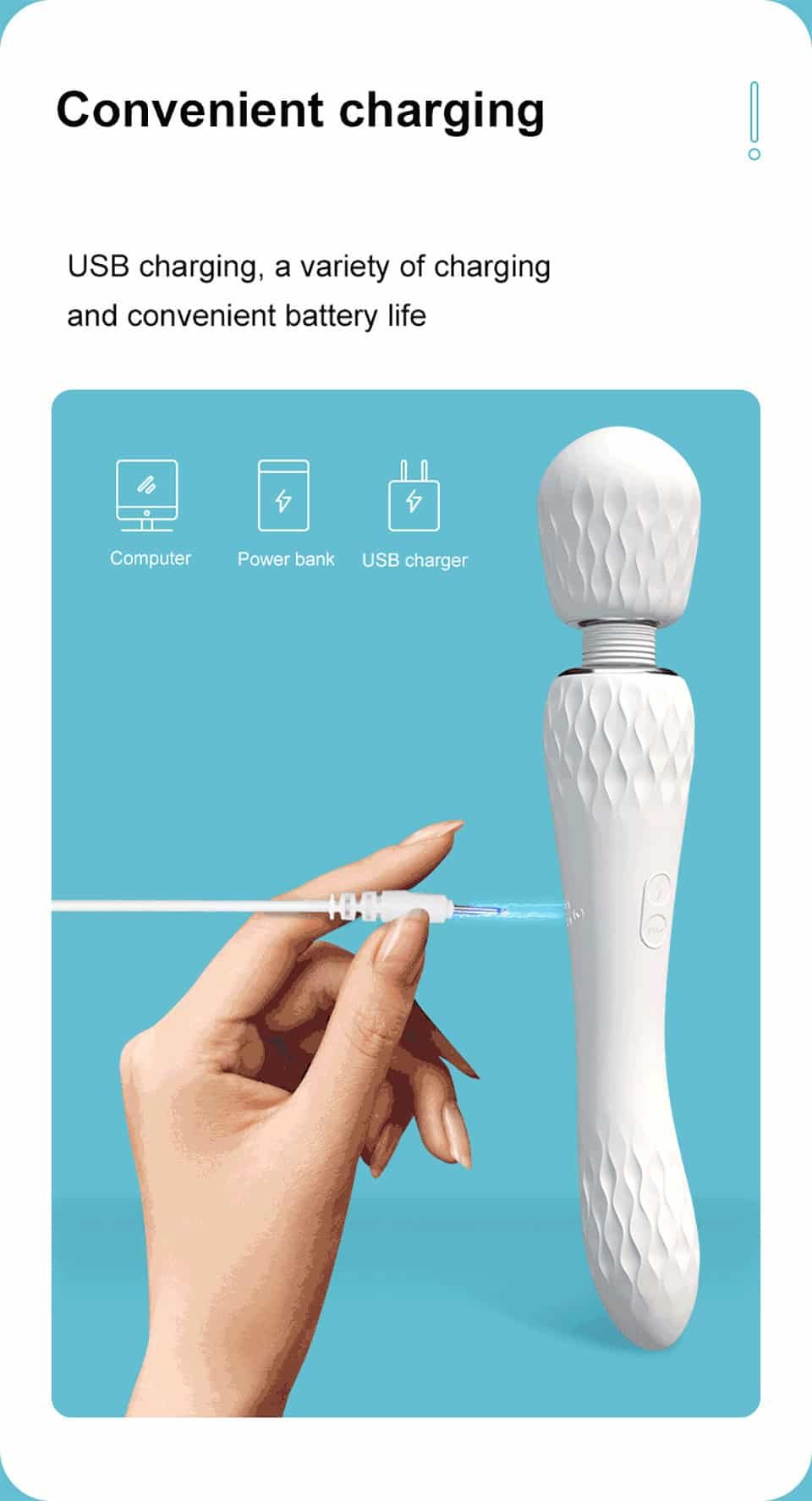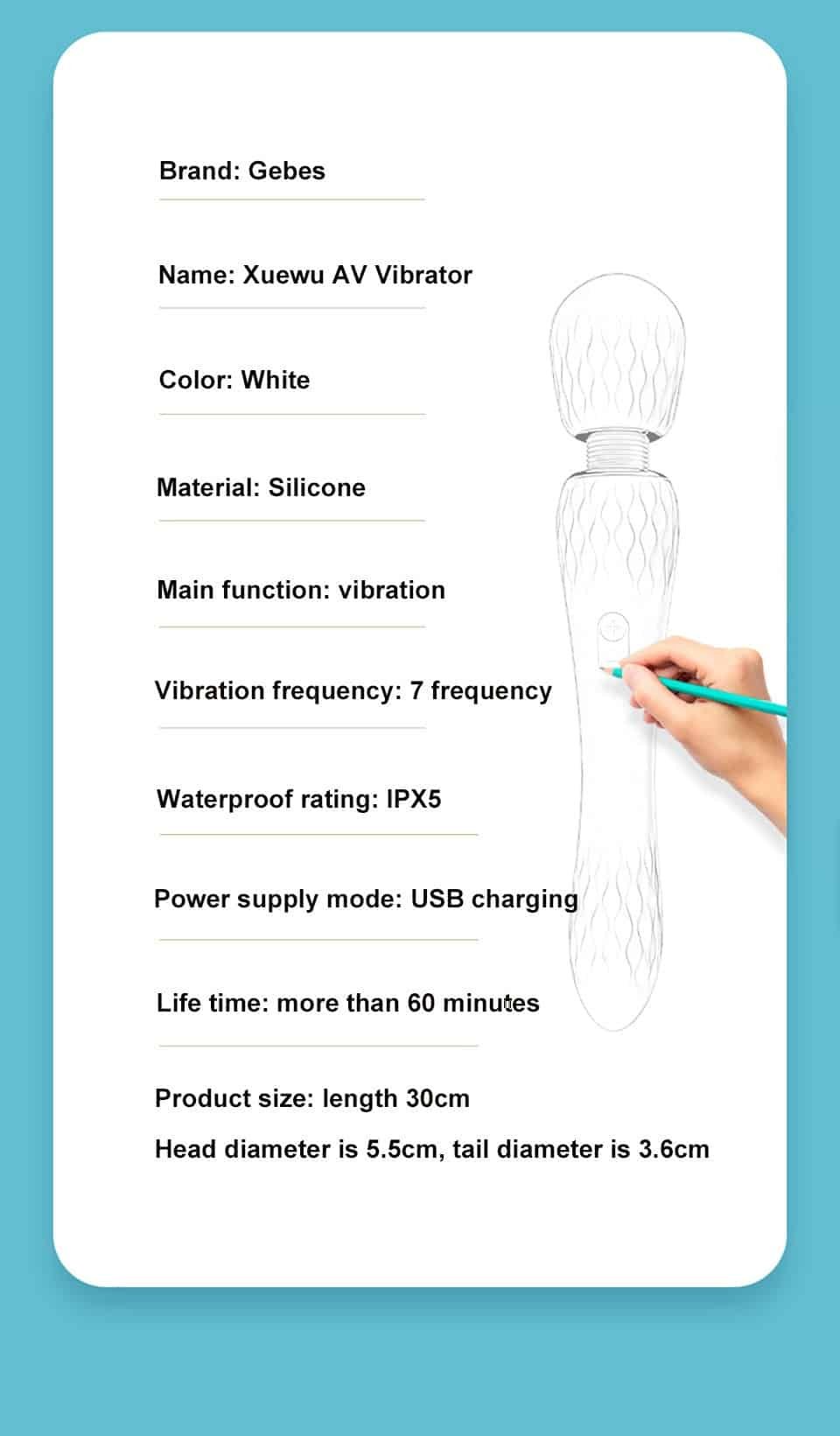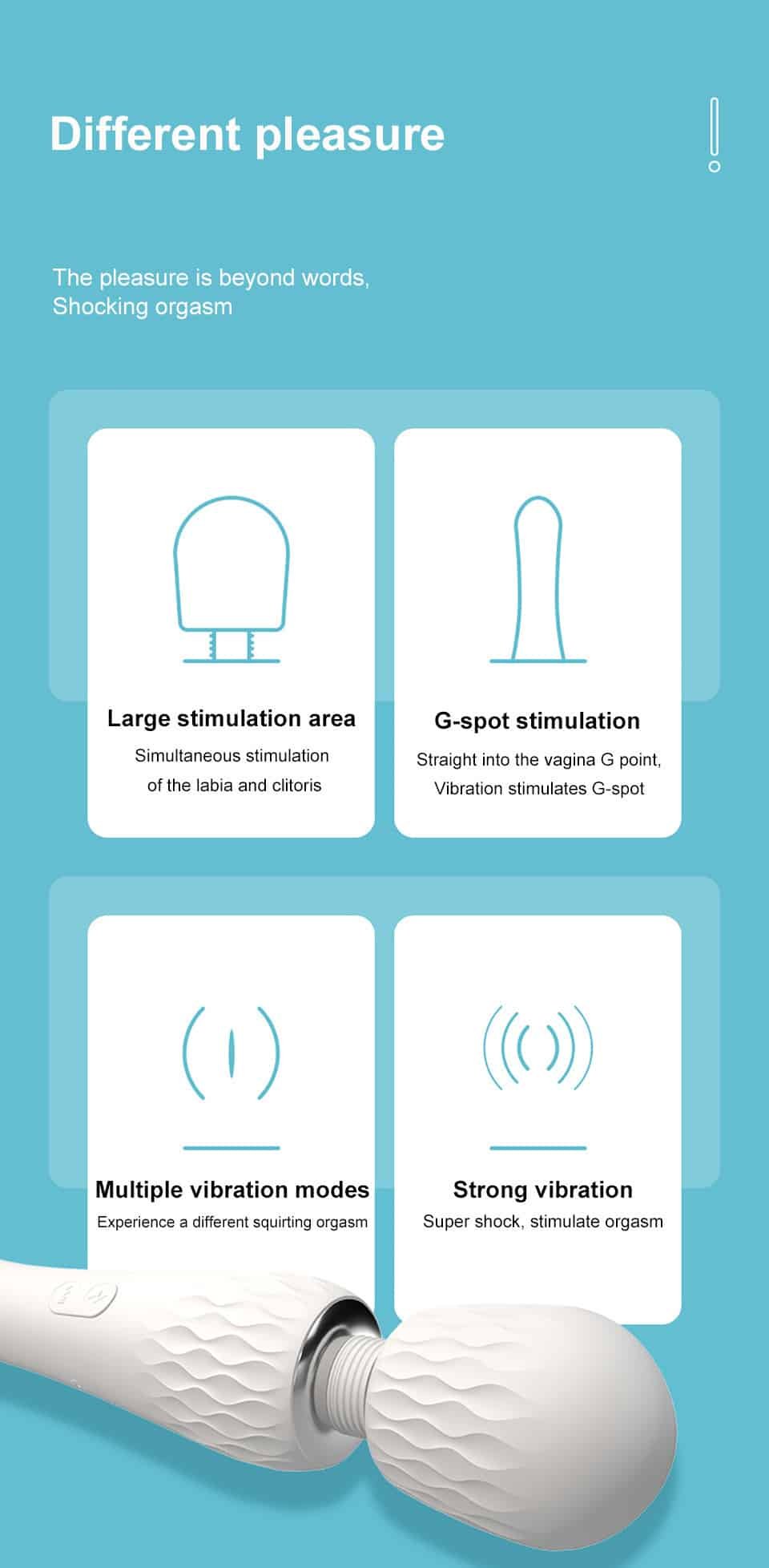 This is a powerful vibrator with strong vibration on the big head. which can massage the whole body and stimulate the clitoris or nipples. The tail also has multi-frequency vibration function. which provides women with vaginal masturbation function. The corrugated texture increases the sense of stimulation. and it Use medical grade silicone. soft and skin-friendly. recommended!