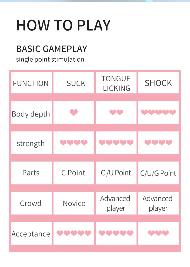 9 Tongue Licking modes (teasing to rapid flicks)